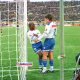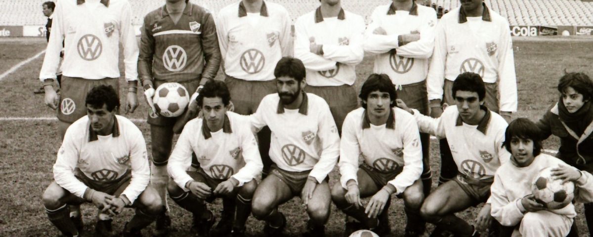 Dos mascotas. Una de las formaciones del Club Nacional de Football 1988. Ostolaza, Seré, Cardaccio, Lasarte, Cabrera y Revelez. Vargas, Rivero, De Lima , Castro y Soca. Que parecido tiene una de las mascotas al «Piñe»…